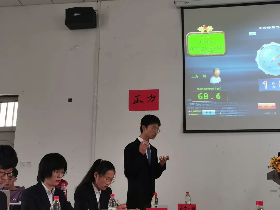 本场比赛中,我院与农林经济管理学院就“消费主义是/不是当代人的精神灾难”这一辩题展开了生动的辩论。继双方精彩的自我介绍后,正式进入辩论环节。立论环节,正方一辩用严谨精简的语言陈述“消费主义是当代人的精神灾难”的观点。反方也层层剖析,对于“消费主义不是当代人的精神灾难”进行了具体陈词。正反二辩就对方的一辩稿进行了质询,其中正方二辩的消费主义不等于消费的质询为正方的论述打开了局面。对方二辩也不示弱,就消费主义对于当代人精神世界的丰富做了进一步质询总结。来到四辩对辩环节,双方各派出本方四辩,一问一答,针锋相对,现场气氛迅速升温。